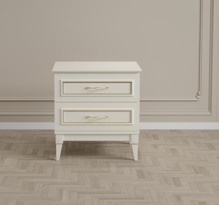 ✨ Vera Premium Gold Komodin, klasik zarafet ile modern tasarımı harmanlayarak yatak odanıza ışıltılı bir dokunuş kazandırır. Gold detaylarla süslenmiş yüzeyi, el işçiliği mine kulpları ve lake boyalı gürgen ayaklarıyla hem estetik hem dayanıklıdır. Kompakt formu sayesinde fonksiyonelliği korurken, stoplu kapağı sessiz ve konforlu bir kullanım sağlar. Vera Premium Gold Komodin, şıklığın ve kalitenin mükemmel dengesini yaşam alanınıza taşır.