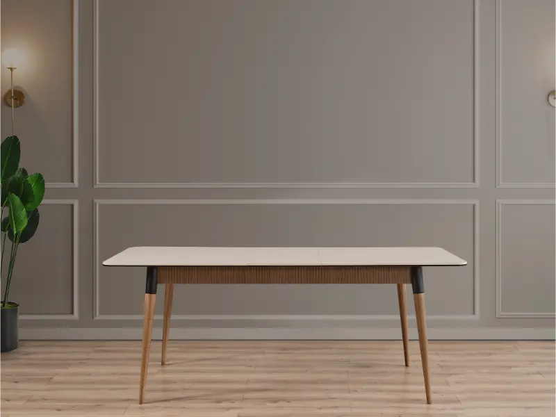 Konfor ve Kullanışlılık: Geniş ve rahat yüzeyi, yemeklerinizin daha keyifli bir deneyim haline gelmesini sağlar. Aile yemeklerinden özel davetlere kadar her türlü etkinlik için ideal bir ortam sunar. Masanın fonksiyonel tasarımı, yemeklerinizi daha keyifli ve konforlu hale getirir.